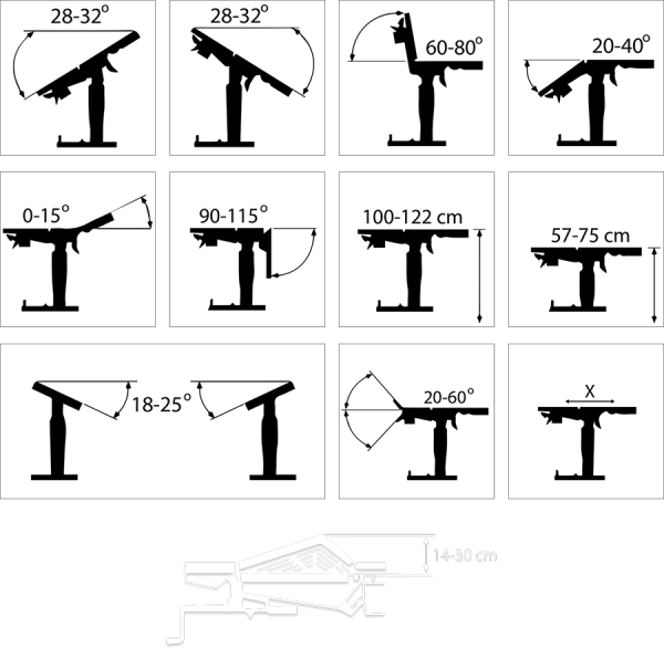 Moving parts are securel.y locked and easily released by gentle handles giving full control at release moment. Your patient is always under control, even with the simplest manual spring load assisted versions.